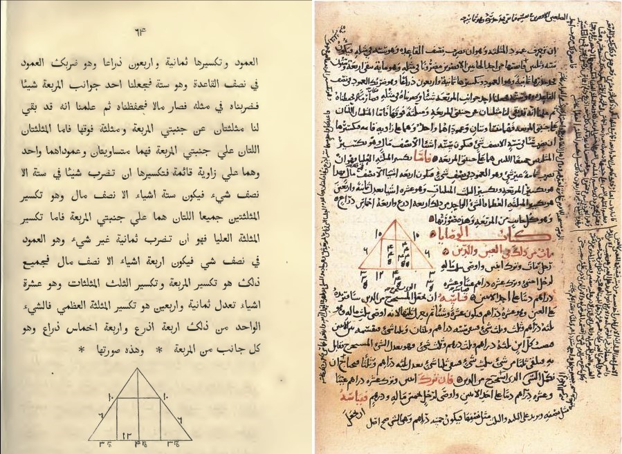 Suggestion: Find a story associated when introducing a new topic. Set the background. Create an atmosphere and mood. Who are your main characters? What issues or problems are trying to be solved? Who comes up with possible solutions and why? Bring in a primary historical source if possible to show. For instance, here on the left is an 1831 translation of the original Al-Jabr work (on the right).